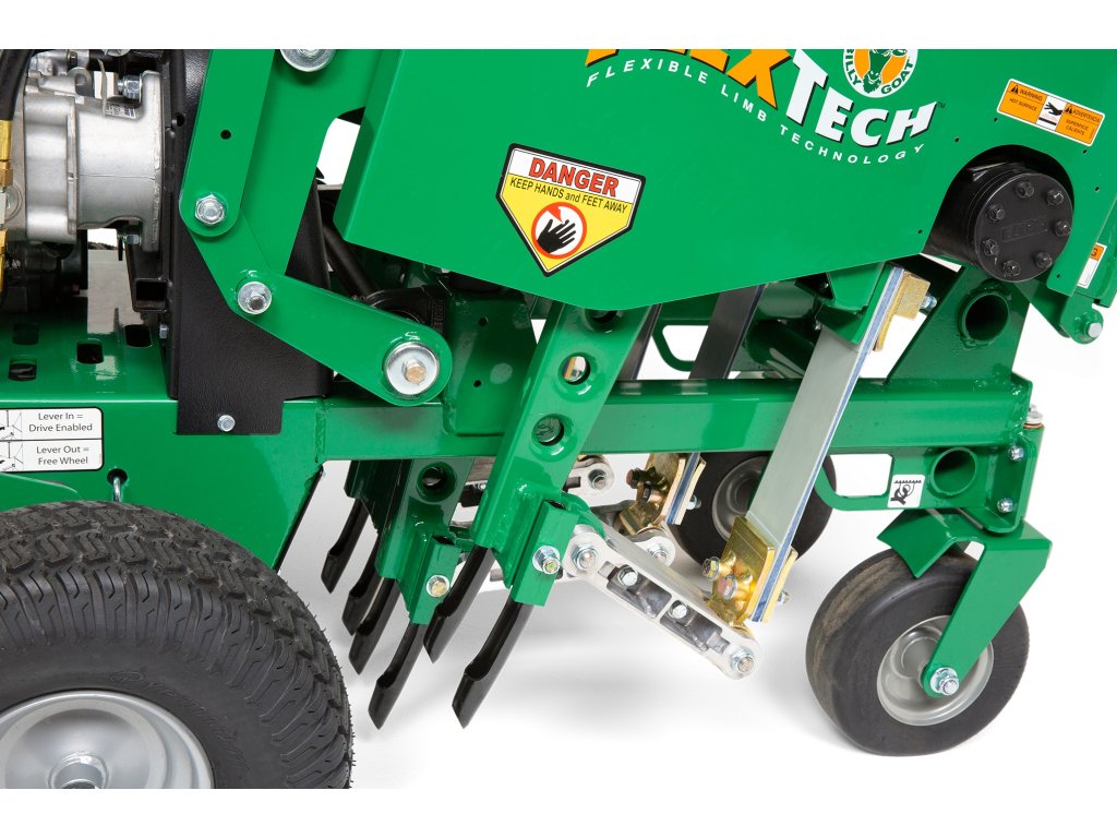 Ramena FLEXTECH™ - Odolná nezávisle pracující ramena. Klikový mechanismus zvyšuje pracovní hloubku až na 7,6 cm. Při vratném pohybu (ven z půdy) hroty nedeformují vytvořené otvory v půdě.