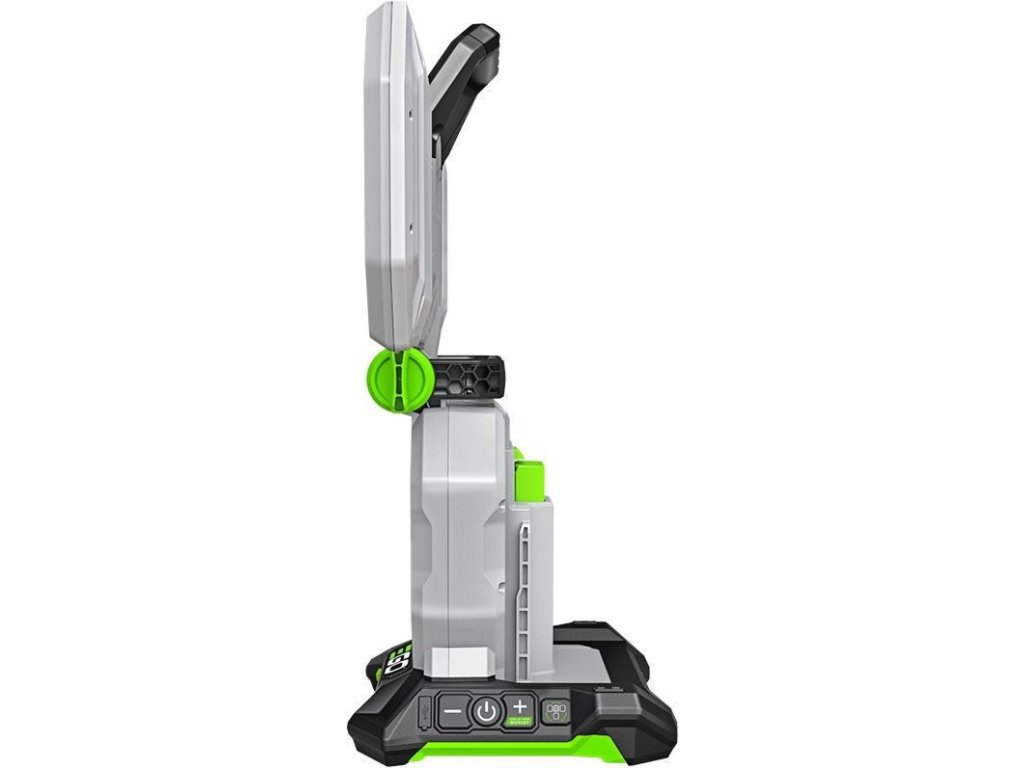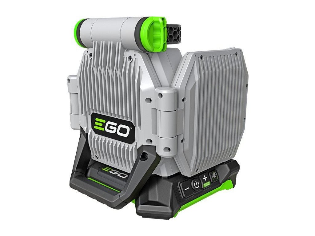 K tomu výborně poslouží lehké, přenosné a výkonné LED osvětlení, rovněž napájené jakoukoliv baterií EGO. Jednotlivé panely jsou osazeny LED (Light Emitting Diode) diodami, které jsou pověstné svojí vysokou svítivostí, energetickou nenáročností a hlavně dlouhou životností, která se udává v desítkách tisíc hodin svícení. Světelný výkon lze nastavit v 5-ti různých intenzitách, od 600 až po 10.000 lumenů. Kompaktní design umožňuje osvětlení směrově nakonfigurovat dle libosti a ve složeném stavu s integrovanou rukojetí lze snadno uchopit a jít. Celé zařízení totiž váží necelých 4,5kg bez baterie. Osvětlovací těleso lze zavěsit za integrovaný závěs, nebo jej ustavit na stabilní podstavec a díky naklápěcím panelům lze osvítit prostorv rozsahu 360°. Použití je možné jak v interiéru, tak i venku. Mimochodem, podstavec je opatřen i výstupem USB-A pro případné dobití např. telefonu. Flexibilitu, výkon a kompaktní rozměry ocení především cestovatelé v kempech, přírodě, rybáři a všichni, kdo potřebují svítit, aniž by hlukem obtěžovali své okolí.