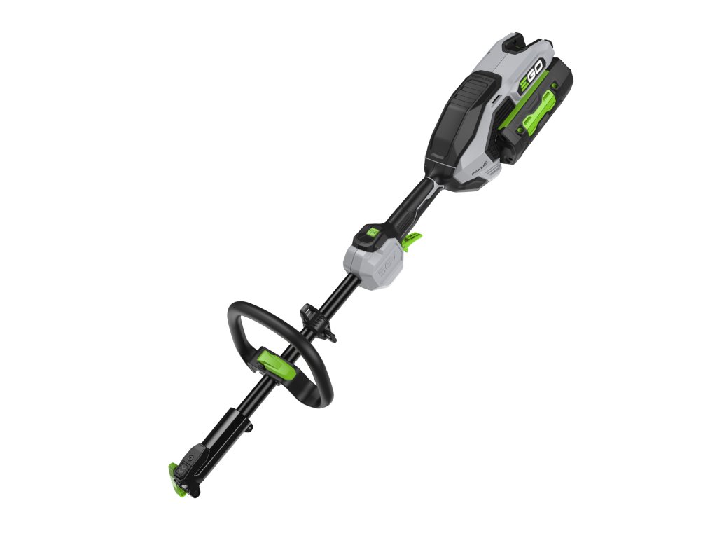 Při práci je stroj zavěšen na bezpečnostní karabině ramenního popruhu nebo jen tak nesený ve volné ruce. Ovládání pomocí obloukové rukojeti s antivibračním úchopem je velice snadnou záležitostí, kterou zvládne i méně zručný uživatel. Stroj je hodně kompaktní, při použití velmi obratný, a proto vhodný pro používání celého portfolia pracovních nástavců, do kterého patří kromě již zmíněné strunové hlavy, žací nástroje jako je případně ocelový žací kotouč, nástavec s řetězovou prořezávací pilou, nástavec s nůžkami na živý plot, zařezávač trávníkových okrajů, minirotavátor, válcový kartáč a dosah jednotlivých nástavců se dá prodloužit pomocí karbonového prodlužovacího nástavce. Na pohon stroje lze použít jakoukoliv baterii ze sortimentu EGO a např. baterie 2,5Ah vám umožní pracovat s vyžínacím nástavcem nepřetržitě až 18 minut a s baterií 5,0Ah až 45 minut nebo s nástavcem nůžek na živý plot až 37, resp. 60 minut .