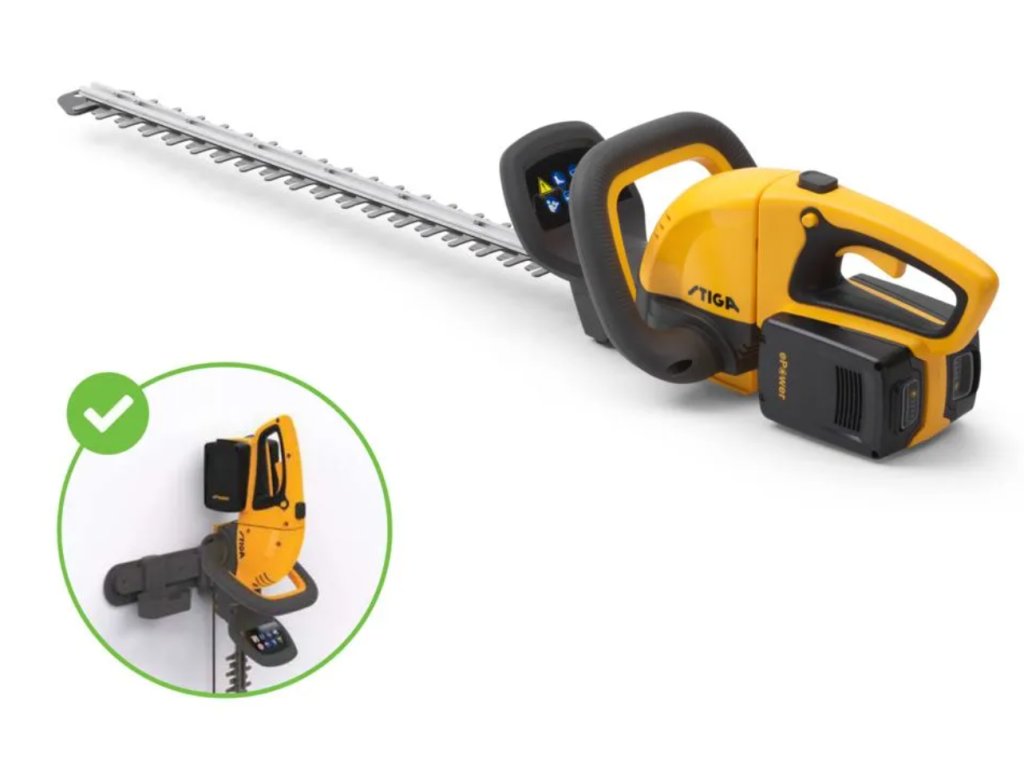 Součástí balení je nový nástěnný nabíjecí a úložný systém STIGA, díky kterému lze baterie dobíjet přímo na zdi a plotostřih přehledně a bezpečně skladovat. Akumulátory 20V ePower jsou navíc kompatibilní s dalšími stroji STIGA ze stejného bateriového systému.