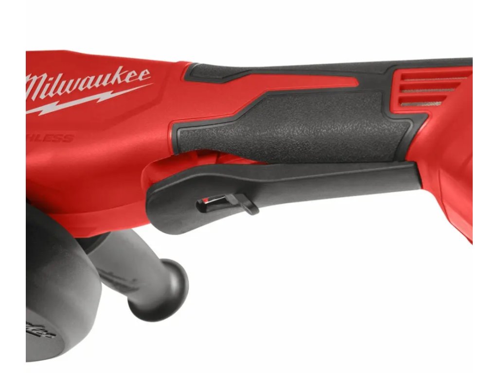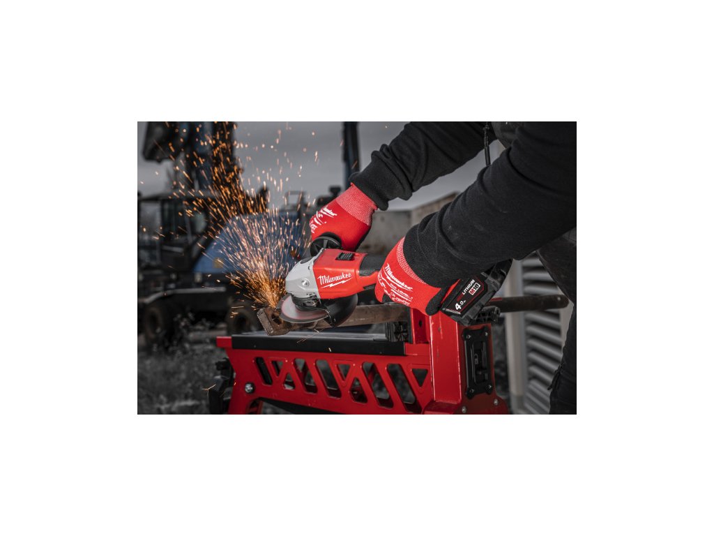 Aku úhlová bruska Milwaukee M18 BLSAG125XPD-0 s průměrem kotouče 125 mm nabízí kolébkový spínač a je dodávána bez akumulátoru. Vhodná pro řezání i broušení kovových materiálů.