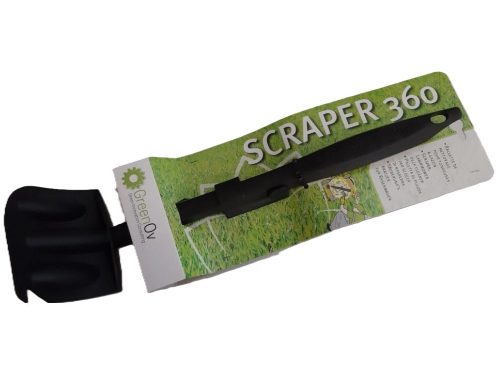 Po každém použití je nutné sekačku zbavit nalepených zbytků trávy, hlíny, listí a dalších nečistot, které jsou nalepeny na vnitřní straně sekací komory v prostoru sekacího nože. Tato škrabka je určena právě na šetrné čištění vyčištění tohoto prostoru sekačky.