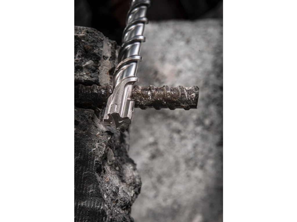 - Speciálně vypracovaná geometrie s optimálně symetrickou 4 x 90°, silnou hlavou karbidového břitu. Snižuje riziko zaseknutí při kontaktu s armovací tyčí.