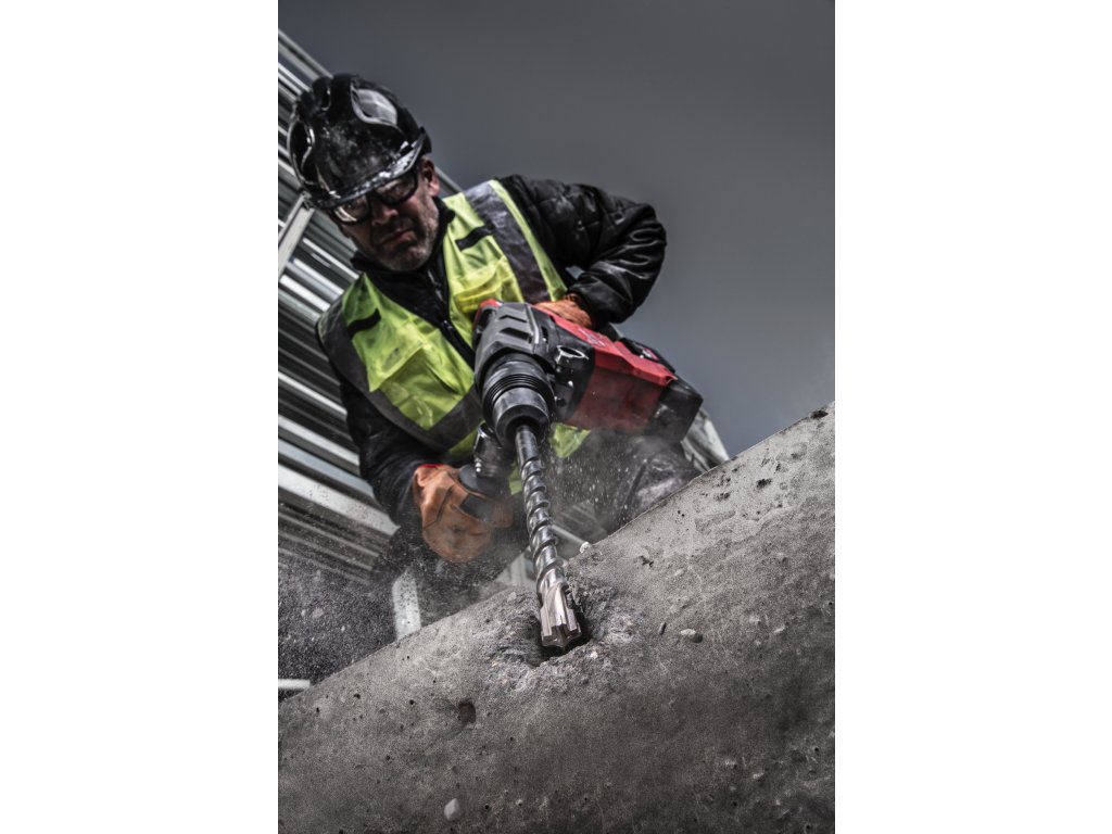 - Speciálně vypracovaná geometrie s optimálně symetrickou 4 x 90°, silnou hlavou karbidového břitu. Snižuje riziko zaseknutí při kontaktu s armovací tyčí.