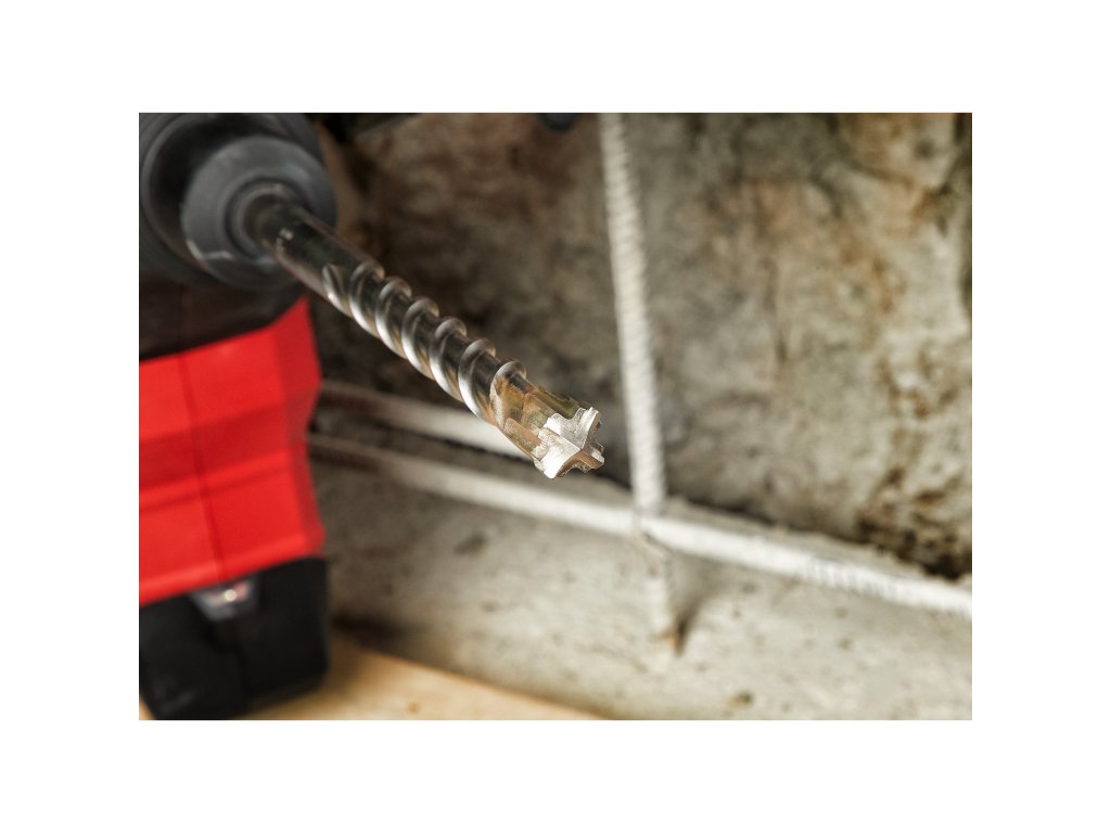 - Speciálně vypracovaná geometrie s optimálně symetrickou 4 x 90°, silnou hlavou karbidového břitu. Snižuje riziko zaseknutí při kontaktu s armovací tyčí.