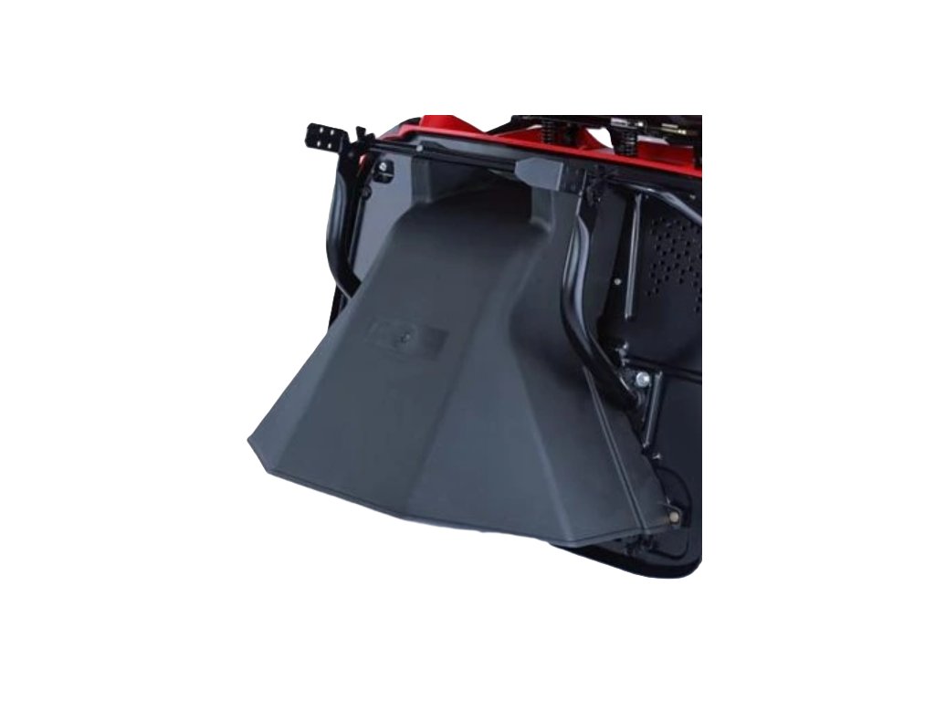 Deflektror usměrní vyhazovanou trávu k zemi a zabrání případnému vymrštění náhodného kamene či jiného předmětu do prostoru za traktorem při sekání bez sběru do travního boxu.