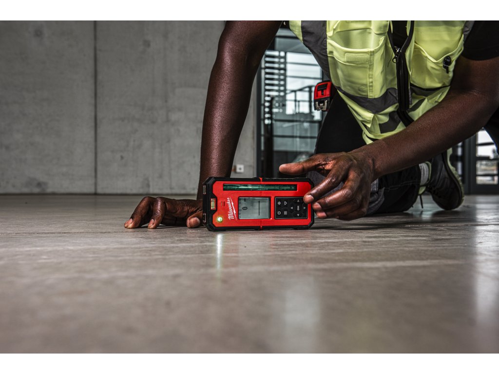 - Snadno čitelný, zadní a přední podsvícený displej s rozměry v mm/palcích pro dobrou viditelnost, ať v interiéru nebo exteriéru