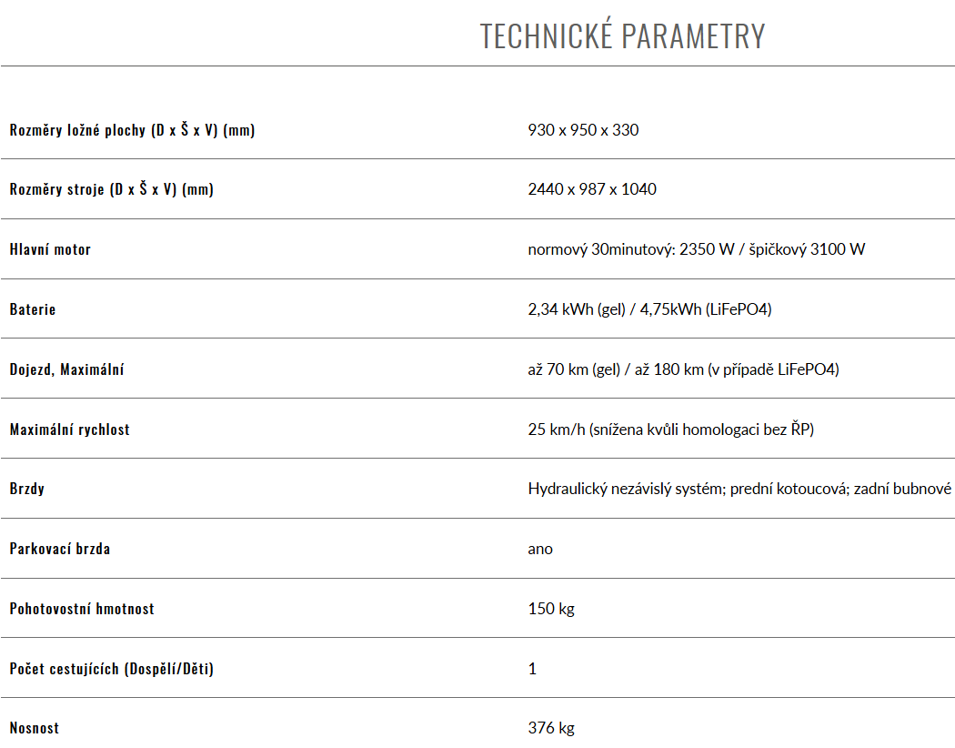 | Maximální náklad vč. řidiče: | 376 kg |