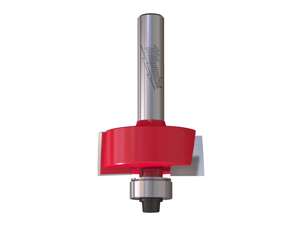 - Dvoubřitá tvrdokovová falcovací fréza se spodním ložiskem pro samonavádění, vhodná pro vytváření polodrážek na rovných i zakřivených obrobcích
