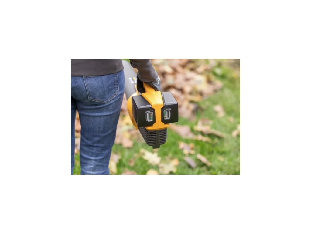 Více výkonu pro foukání listí! Foukač na baterie 2x20 V se 2 různými rychlostmi proudění vzduchu a dokonalým vyvážením, díky němuž během okamžiku odstraníte listí a nečistoty z cesty.