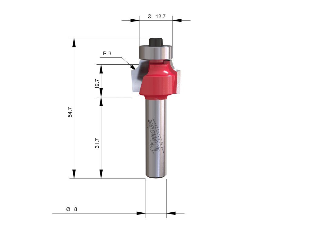 Frézy na zaoblení a římsové profily - Rtr B. S12 Roundover 50.8/73mm - 1 pc