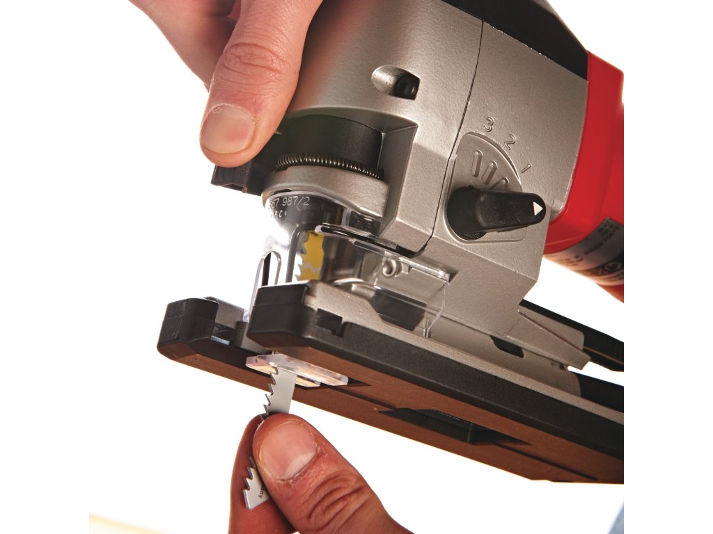 - Čtyřstupňové seřízení kyvného zdvihu pro zvýšený řezný výkon a delší životnost pilového listu