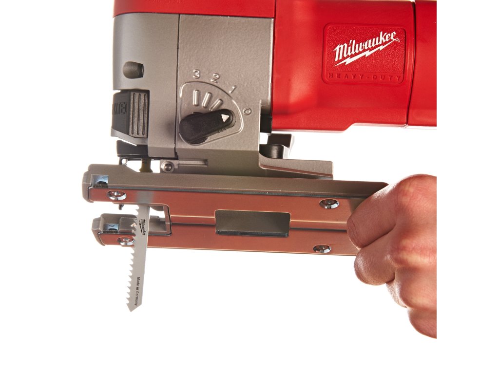 - Čtyřstupňové seřízení kyvného zdvihu pro zvýšený řezný výkon a delší životnost pilového listu