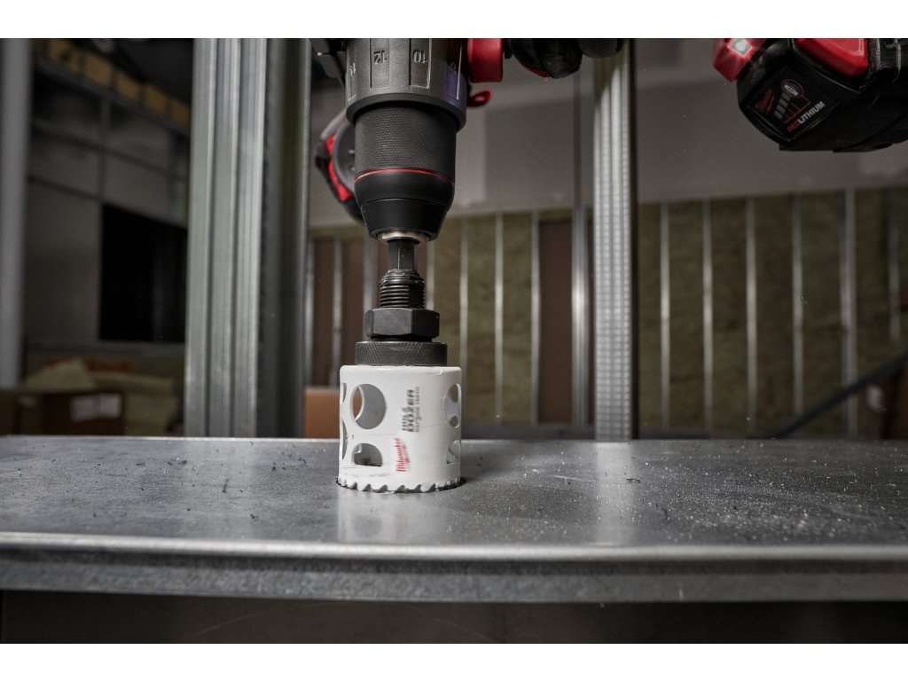 - Geometrie slotů PLUG JACK™ poskytuje více možností opory nástroje při páčení odvrtaného jádra z děrovky, díky čemuž lze snadno odstranit jak jádro ze silného materiálu, tak i z tenkého plechu.