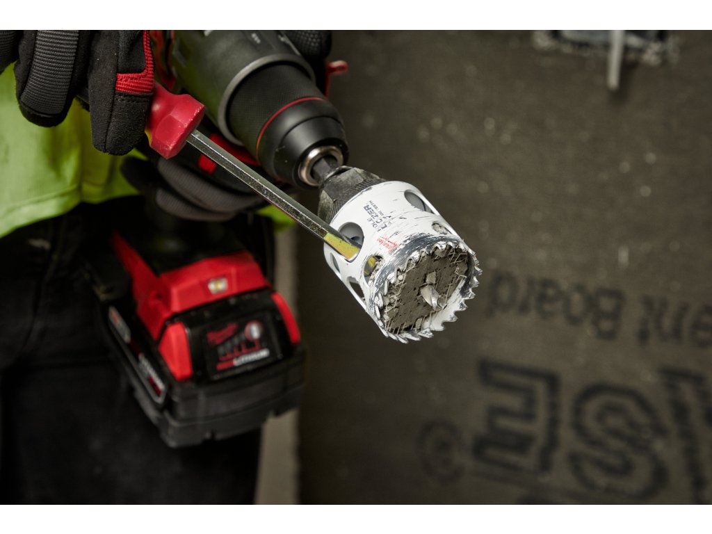 - Geometrie slotů PLUG JACK™ poskytuje více možností opory nástroje při páčení odvrtaného jádra z děrovky, díky čemuž lze snadno odstranit jak jádro ze silného materiálu, tak i z tenkého plechu.