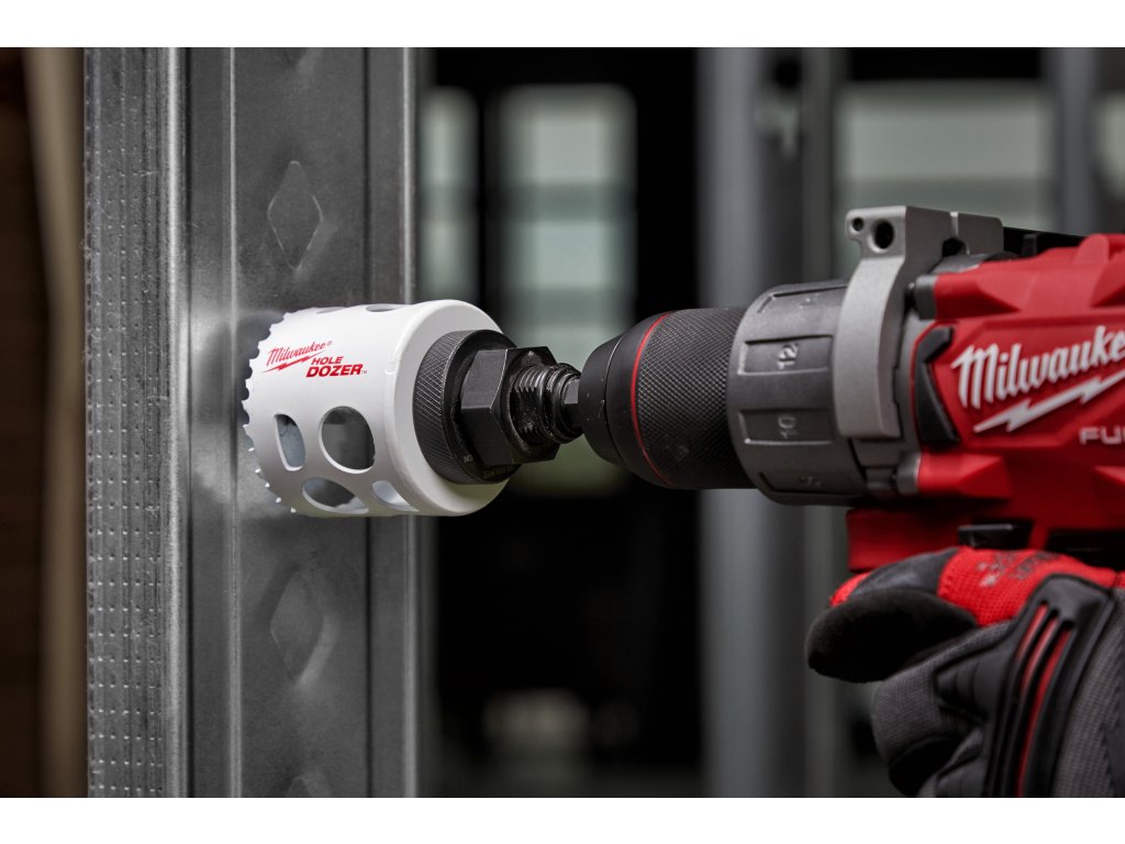 | Obsahuje: | 7 x děrovka : Ø 16, 20, 25, 32, 40, 51, 64 mm. Prodloužení 330 mm - Hex 9.5 mm. Unašeč Ø 14 - 30 mm (49567010). Unašeč Ø 32 - 152 mm (49569100). 2 x pilotní vrták. ⅛" imbusový klíč |