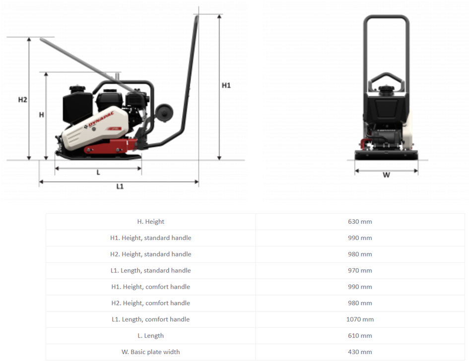 Dynapac DFP8X je spolehlivá vibrační deska určená pro hutnění zemin, štěrků a zámkové dlažby. Díky provozní hmotnosti 95,5 kg, hutnicí síle 15 kN a pracovní šířce 430 mm poskytuje vyvážený výkon a přesné vedení stroje při práci na menších a středně velkých plochách.