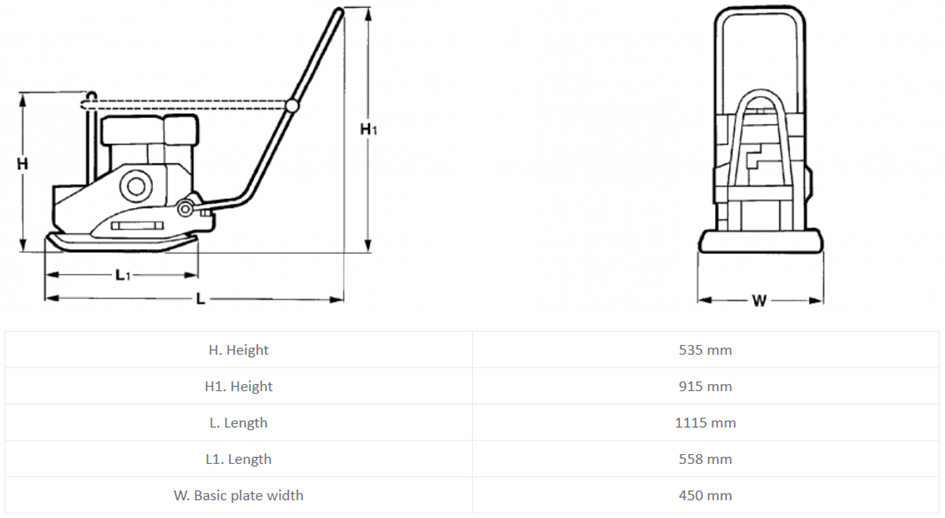 - Šířka hutnění: 450 mm