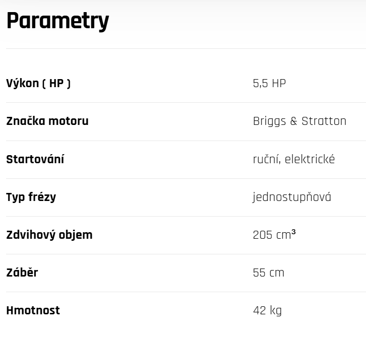 Motor a šnek s gumovými břity dokonale vyčistí rovné plochy až na podklad rychleji než typické jednostupňové frézy. Díky sklopným rukojetím zabere málo prostoru při skladování a snadno se vejde do zavazadlového prostoru osobního automobilu.