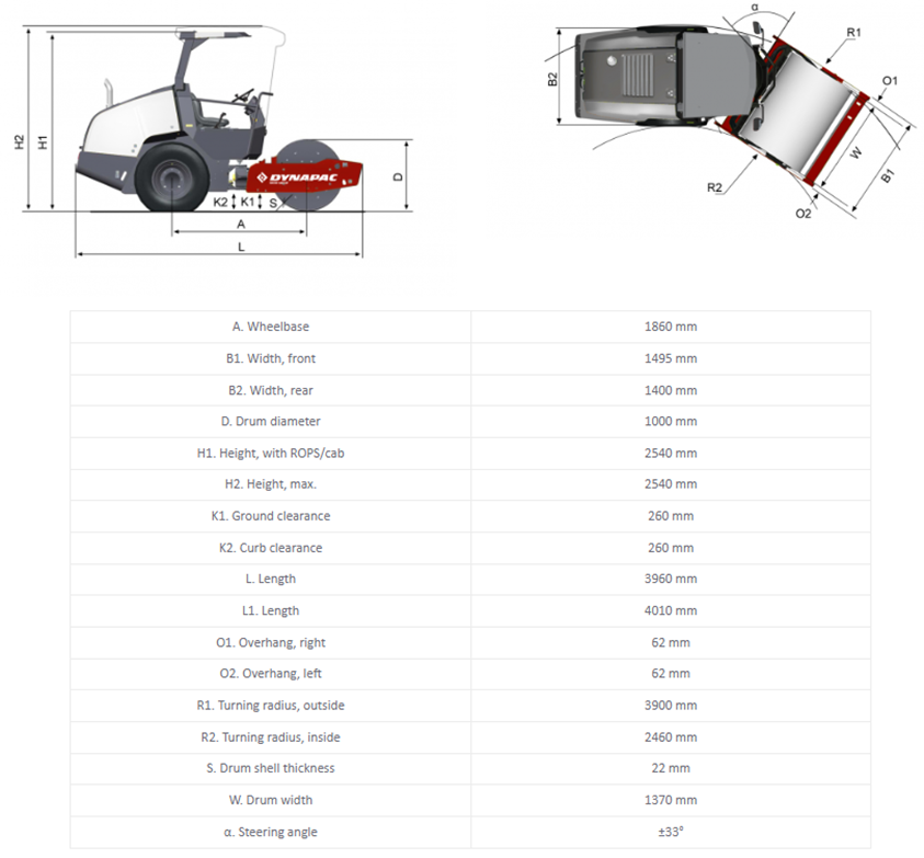 Dynapac CA1300D je kompaktní jednoválcový vibrační válec určený pro hutnění zemin při výstavbě silnic, ulic, parkovišť a základů budov. Díky své malé velikosti, vysoké manévrovatelnosti a výborné stoupavosti je ideální pro práci ve stísněných prostorech, při zásypových pracích nebo na svažitých terénech. Stroj je vybaven úsporným motorem Kubota V3307 CR-TE4 (55 kW / 75 hp) splňujícím emisní normu Stage V, který v kombinaci s režimem EcoMode zaručuje nízkou spotřebu paliva a optimální výkon. Varianta CA1300PD je osazena patačním válcem s přídavným pohonem, což ji činí ideální volbou pro hutnění jemnozrnných, jílovitých a hlinitých půd.