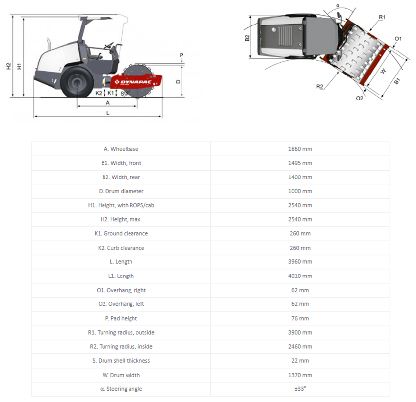 Dynapac CA1300PD je kompaktní jednoválcový vibrační válec určený pro hutnění jemnozrnných a jílovitých zemin. Díky svým kompaktním rozměrům, výborné manévrovatelnosti a silnému pohonu je ideální pro práce v úzkých výkopech, na stavbách silnic, parkovišť, základů i průmyslových objektů. Výkonný motor Kubota V3307 CR-TE5 (55 kW / 75 hp) splňující emisní normu Stage V zaručuje vysoký výkon s nízkou spotřebou paliva, kterou dále optimalizuje systém EcoMode. Robustní patační válec s 72 výstupky poskytuje vynikající zhutnění soudržných půd.