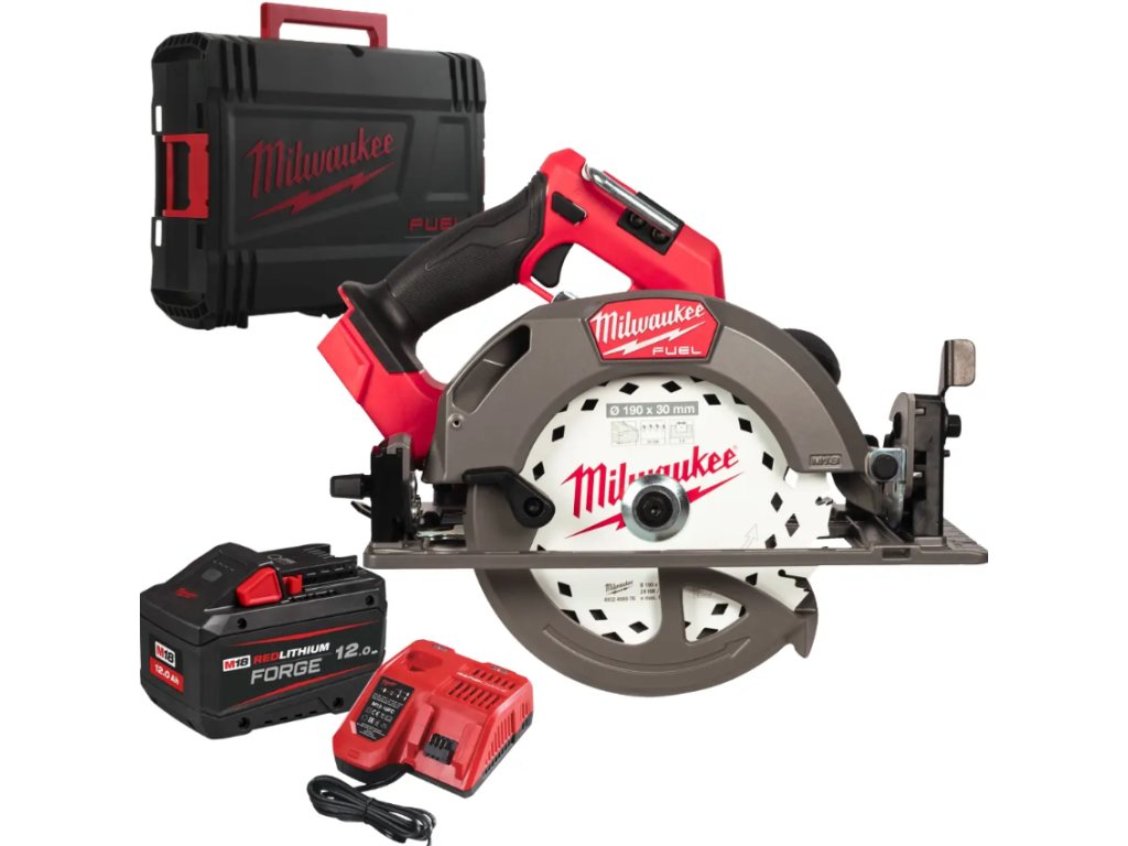 - Okružní pila M18 FUEL™ poskytuje výkon pro podélné řezání a umožňuje udržovat 6 000 otáček za minutu po celou dobu práce a díky technologii FORGE™ zabudované v této pile zajišťuje rychlejší řezání - na jedno nabití akumulátoru 12,0 Ah dokáže nařezat až 700 kusů borovicového hranolu o rozměrech 90 x 45 mm nebo 64 běžných metrů borovicového panelu o tloušťce 42 mm