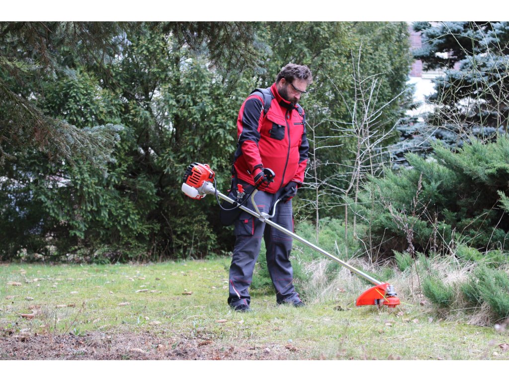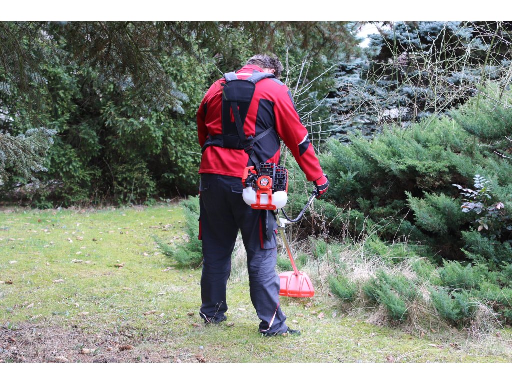 Křovinořez je navržen pro pohodlnou práci i při delším používání. Ergonomická řídítka, komfortní dvojramenný popruh a dobře vyvážená konstrukce minimalizují únavu při práci. Součástí základní výbavy je strunová hlava pro vyžínání trávy i ocelový třízubý žací kotouč pro náročnější práci v hustém porostu nebo náletech.