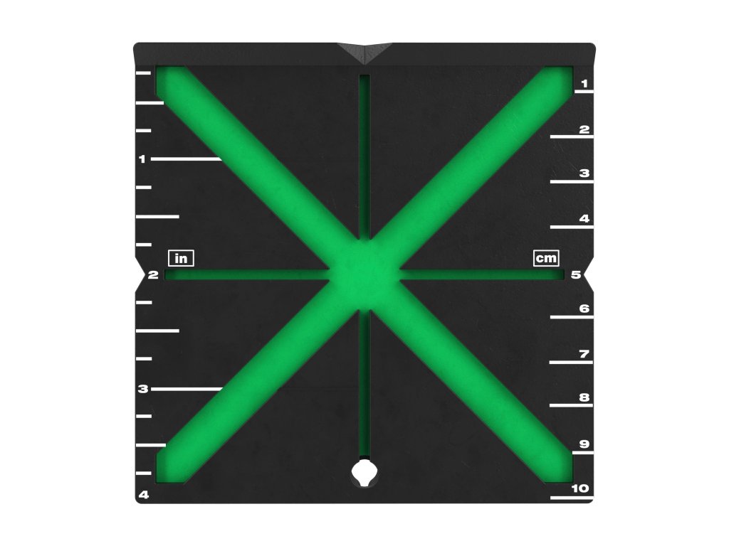 - Konstrukce ve tvaru X poskytuje citlivou zpětnou vazbu při srovnávání, která navádí čáru do středu, čímž proces srovnání laseru urychluje