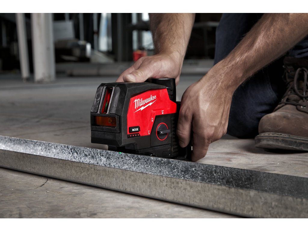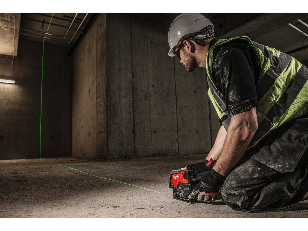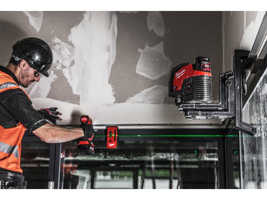 - Křížový liniový laser M12™ se zelenými paprsky a s funkcí olovnice poskytuje funkčnost vše v jednom pomocí horizontálního srovnání, vertikálního srovnání a funkce olovnice pro přenos bodu z podlahy na strop