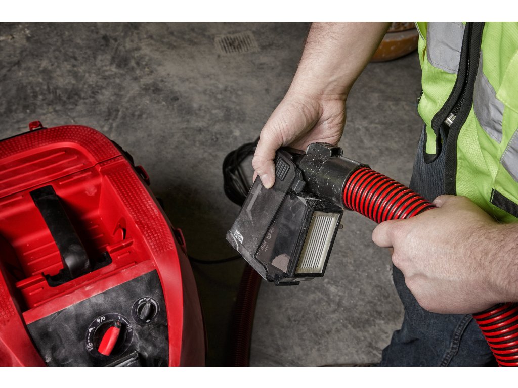 - Zařízení je vybaveno průhledným zásobníkem zaručujícím viditelnost jeho zaplnění a konektorem vysavače s ⌀ 32 mm pro vyprázdnění nádoby na prach bez úniku prachu