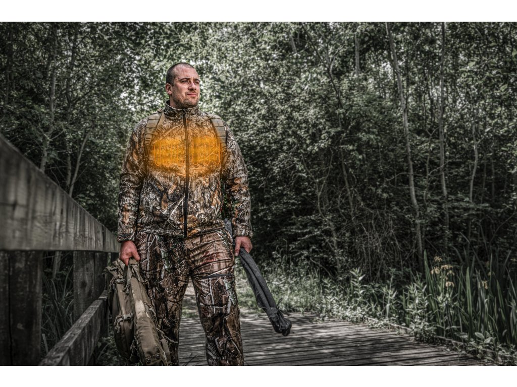 - Teplo na vyžádání - všitá, uhlíková, topná vlákna distribuují teplo do oblastí trupu a do předních kapes