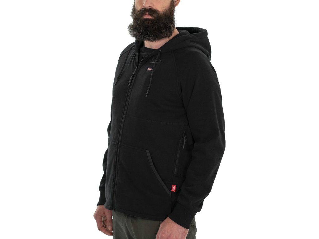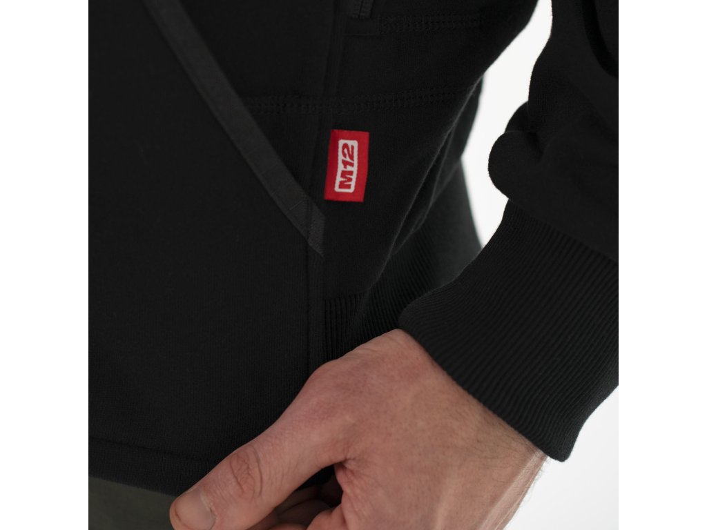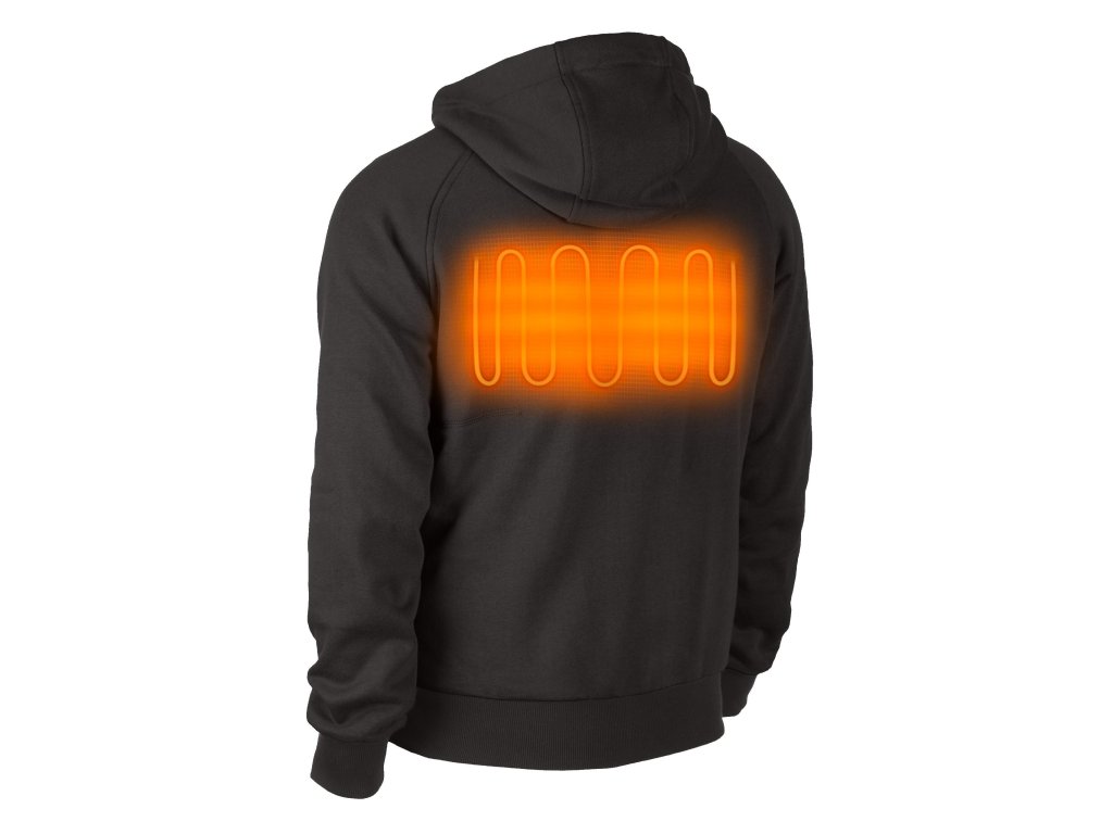 - M12™ vyhřívaná mikina s kapucí, napájená akumulátorem M12™ s vyhřívacími prvky z uhlíkových vláken, vytváří a rozvádí teplo na hruď a záda