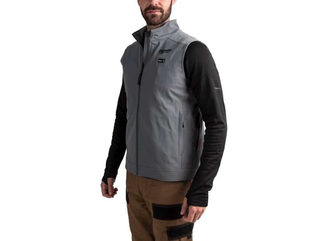 - M12™ vyhřívaná vesta TOUGHSHELL™ napájená akumulátorem M12™ s vyhřívacími prvky z uhlíkových vláken, vytváří a rozvádí teplo na hruď a záda.
