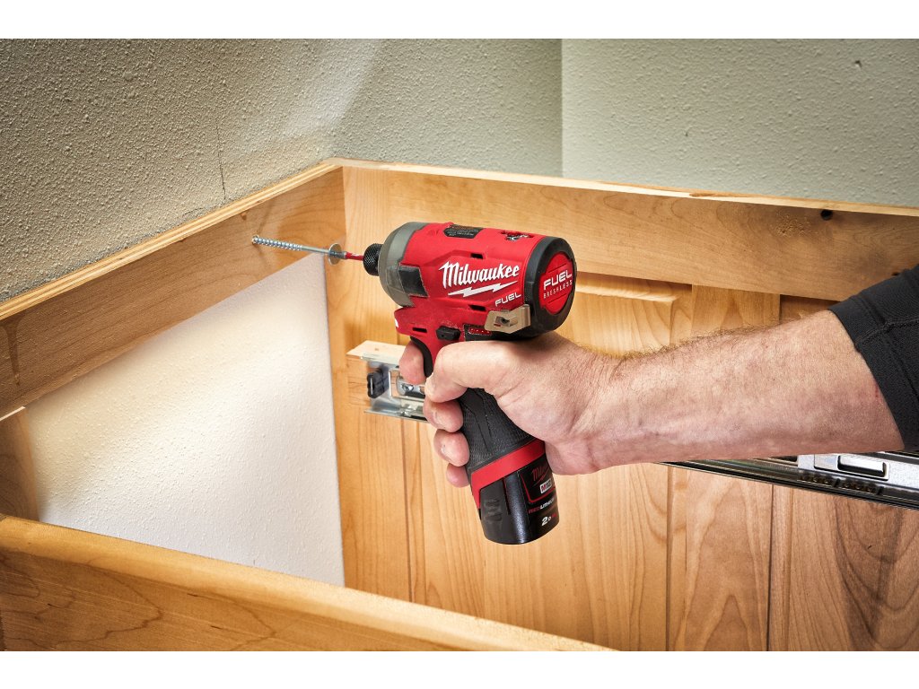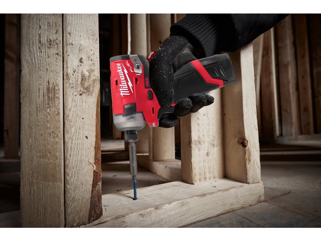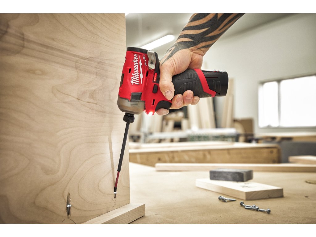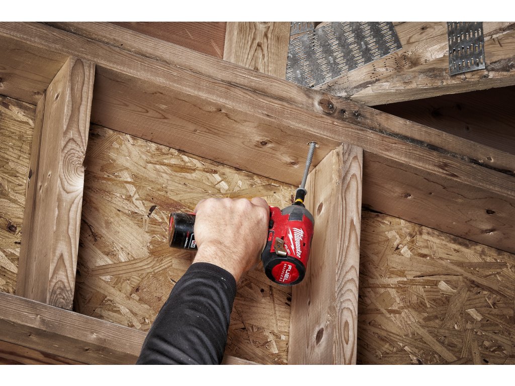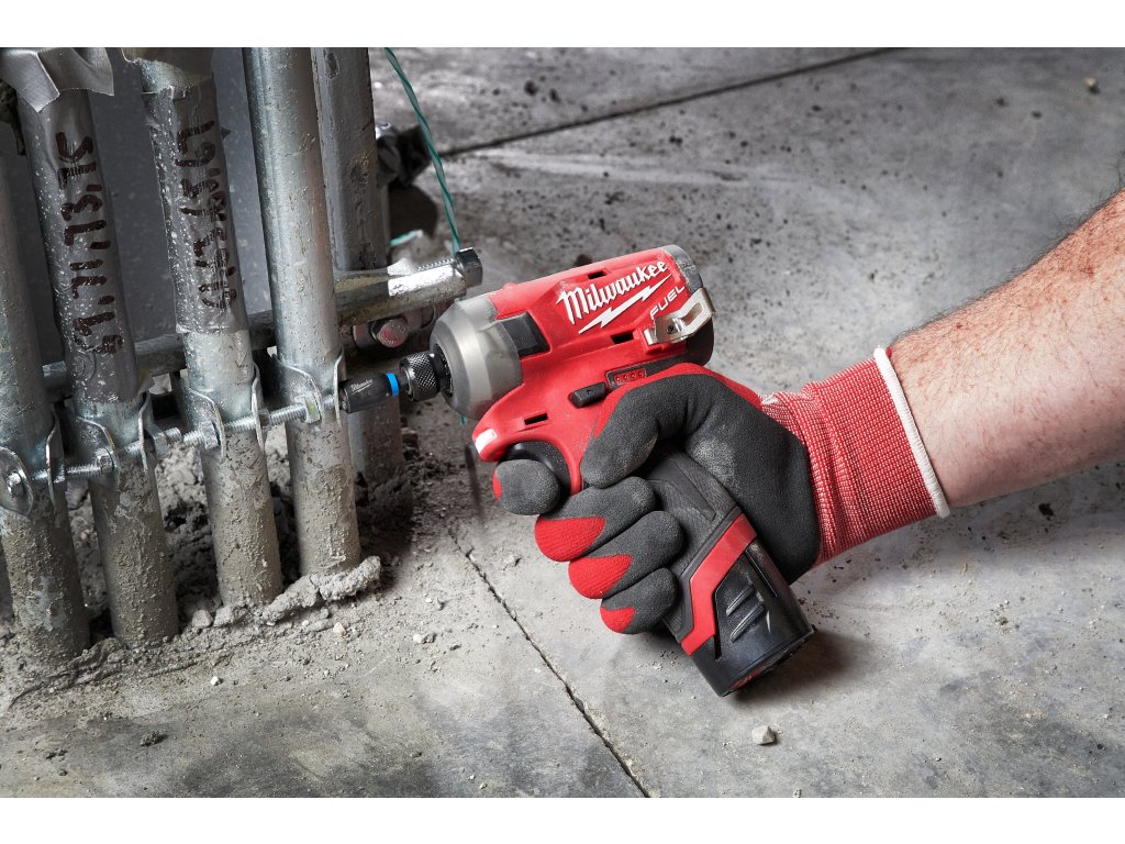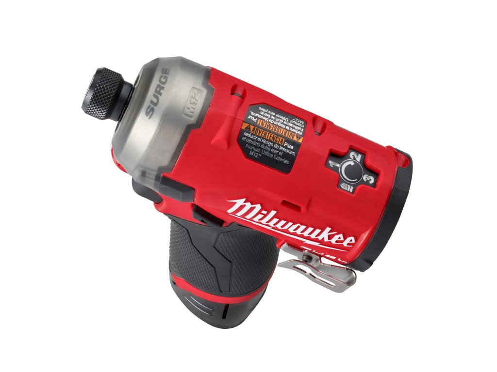 - M12 FUEL™ SURGE™ rázový utahovák ¼″ Hex je nejtišší 12V rázový utahovák na trhu, který při práci se dřevem generuje pouze 76 dB (A)
