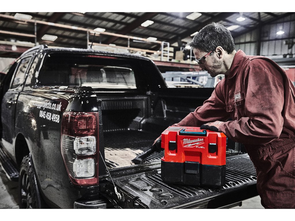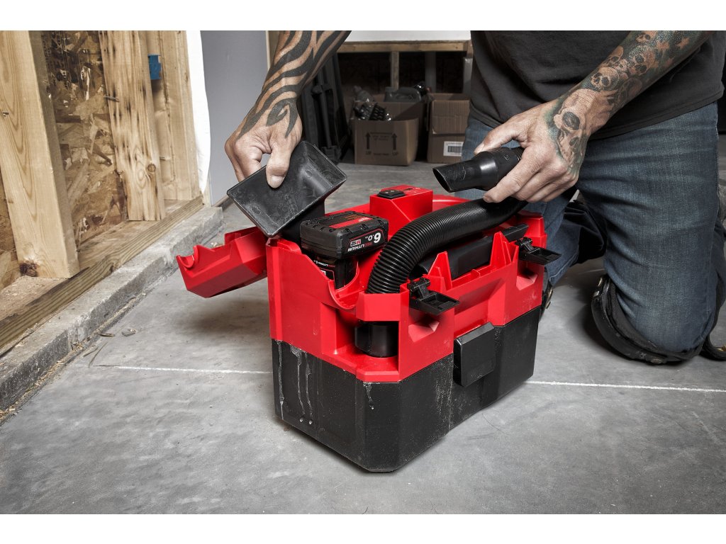 - Výkonný motor M12 FUEL™ s maximálním průtokem vzduchu 1 275 l/min při tlaku 105 barů poskytuje sací výkon odpovídající 18 V pro mokré i suché vysávání