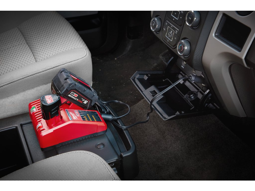 - Nabíjí akumulátory MILWAUKEE® na cestách, což je ideální pro řemeslníky a další profesionály, kteří mohou využít prostoj k dobíjení akumulátorů pomocí běžných 12V zásuvek.