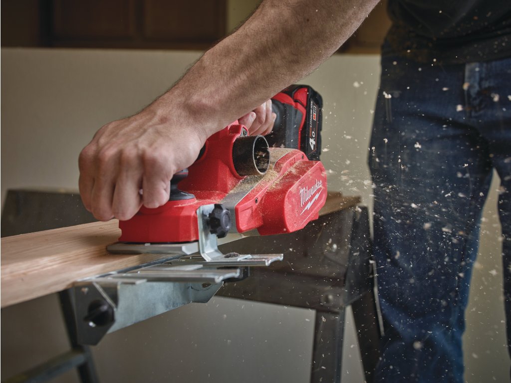 - Rychlejší odebírání materiálu díky dvěma oboustranným karbidovým břitům v hoblované šířce 82 mm