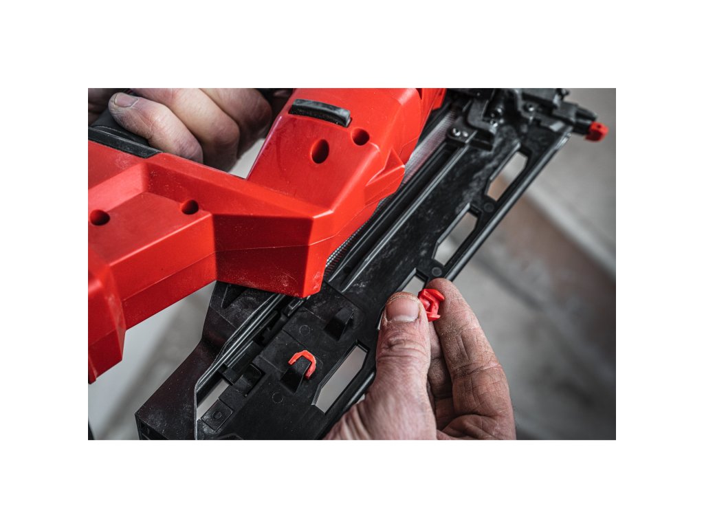 - Zámek Dry-Fire zastaví nastřelování pokud v zásobníku nezůstanou žádné hřebíky