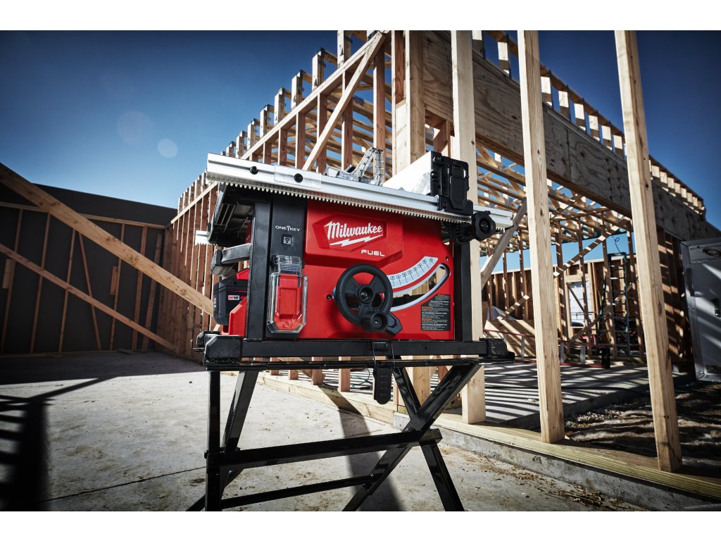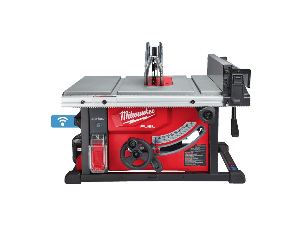 - Stolní pila ONE-KEY™ M18 FUEL™ umožňuje podélné řezy s rychlostí posuvu, jakou disponuje stejná stolní pila s napájecím kabelem a provede řez s délkou 190 m a OSB deskách s tloušťkou 19 mm na jedno nabití akumulátoru s kapacitou 12,0 Ah