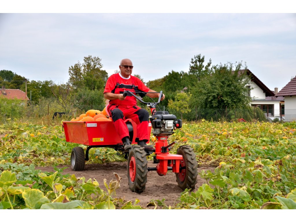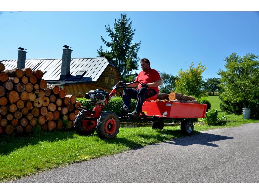 Součástí sestavy je také vyklápěcí přívěs ANV-380 s nosností 380 kg, který umožňuje snadnou přepravu dřeva, zeminy, materiálu nebo zahradního odpadu. Malotraktor tak slouží jako univerzální pomocník během celého roku.