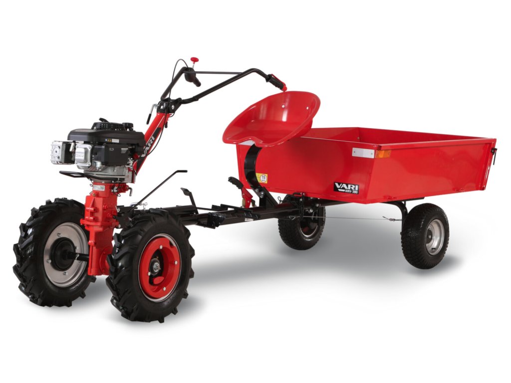 Malotraktor VARI IV GLOBAL s motorem VARI XP-200A a přívěsem ANV-380 je praktická stavebnicová sestava určená pro zahrady, menší farmy i komunální využití. Stroj kombinuje výkonný čtyřtaktní motor, robustní převodovou skříň a vyklápěcí přívěs, takže zvládne přepravu nákladu i práce při obdělávání půdy.