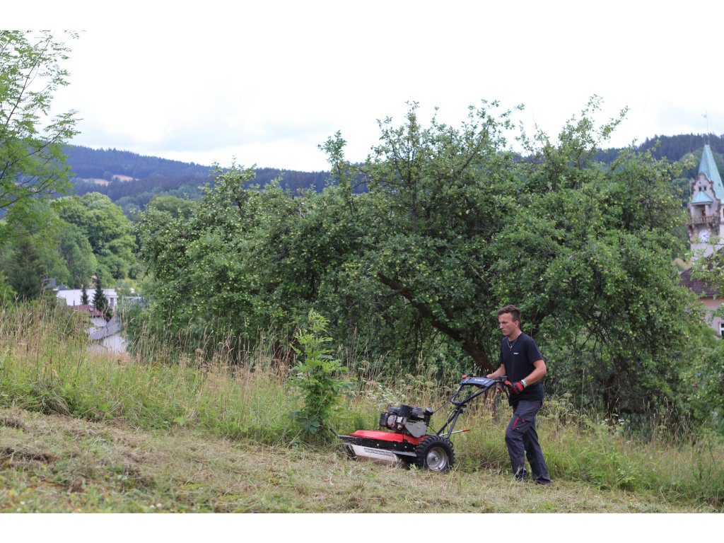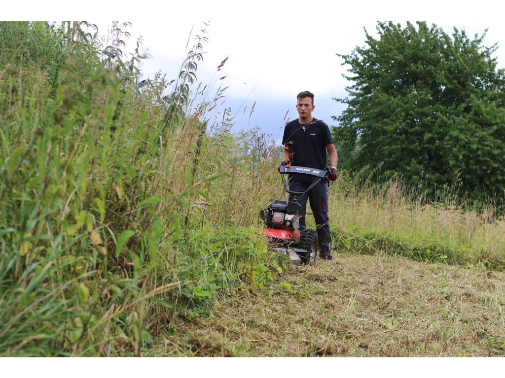 Pro maximální komfort obsluhy je stroj vybaven výškově i stranově nastavitelnými řídítky s antivibračním prvkem, ergonomickými ovládacími pákami a velkými koly s výrazným dezénem pro dobrou trakci v terénu. Mulčovač lze navíc doplnit o sulku s odpruženou sedačkou, která výrazně zvyšuje komfort při práci na velkých plochách.