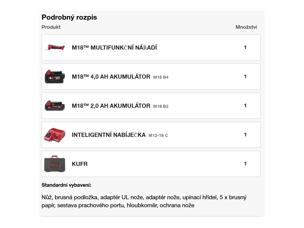 - Akumulátor M18 - 1x 2,0 Ah + 1x 4,0 Ah