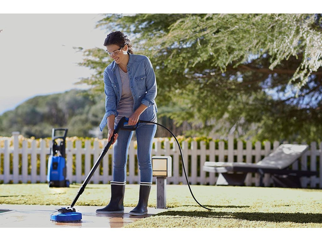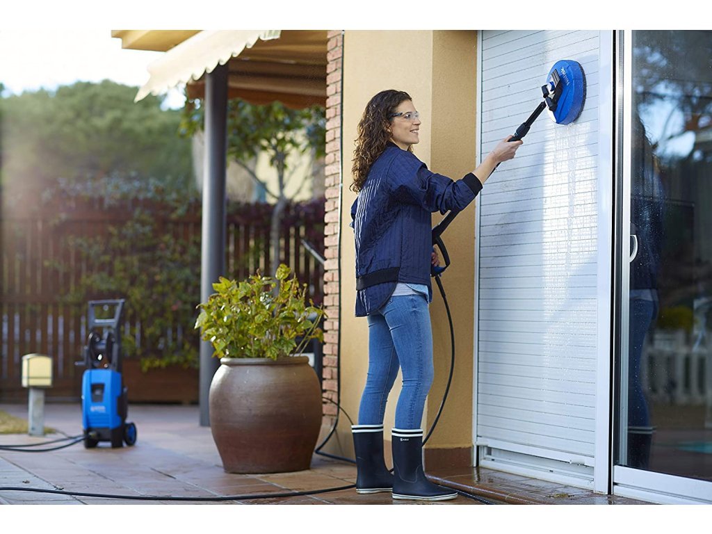 Vysokou účinnost zajišťují vyměnitelné trysky, které si poradí i s odolnými nečistotami. Možnost prodloužení o 0,5 metru a aretace prodlužovacího nástavce zaručují maximální flexibilitu při práci. Pro pohodlné čištění svislých ploch je kartáč vybaven ergonomickým madlem. Ochrana proti rozstřiku navíc zabraňuje poškození povrchů a zároveň eliminuje nechtěné znečištění okolí.
