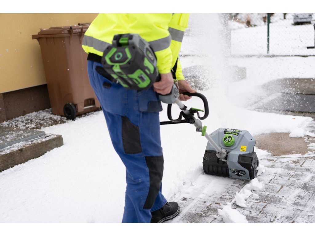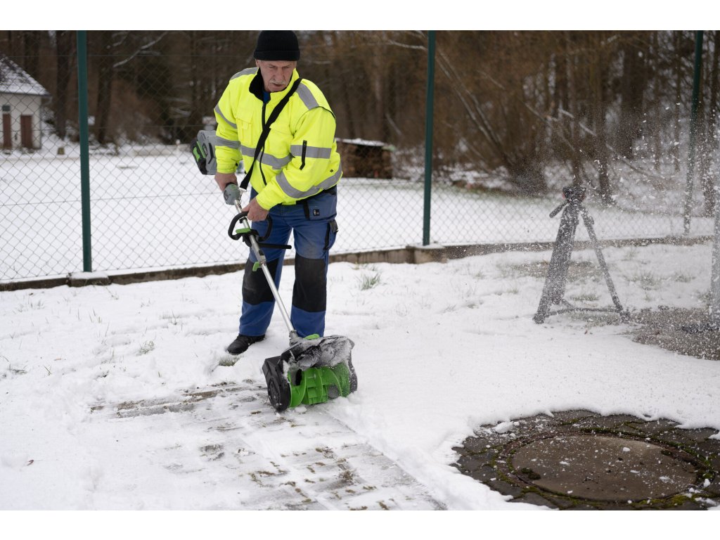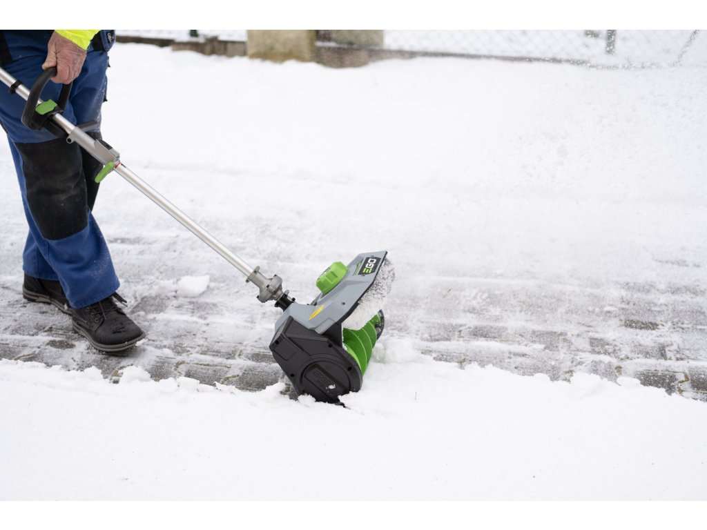 Pokud jste vlastníky malých zpevněných ploch, jako jsou chodníky kolem domku nebo garáže a občas potřebujete prohrábnout uličku od sněhu, oceníte účinnost a kompaktnost nástavce s aktivním hrablem. Jedná se o zařízení pro úklid a odhoz malé sněhové vrstvy (do cca 10cm) z chodníků kolem domku a pod. do vzdálenosti až 7m. Na jeden průjezd odklidíte uličku širokou 30cm. Pevná převodovka hravě zvládá přenos síly od výkonného bezuhlíkového elektromotoru 56V, napájeného některou z nabídky spolehlivých baterií Ego Power+. Ve spojení s akumulátotovou pohonnou jednotkou se jedná o stroj vhodný pro použití kolem rodinného domku, malých domácích chodníčcích, ploch a stáních pro auto. Prostě výkon, funkčnost, komfort obsluhy, nulové emise a hlučnost. Zavěšením celého stroje na jednostranný nosný popruh je práce s aktivním hrablem snadnou záležitostí.