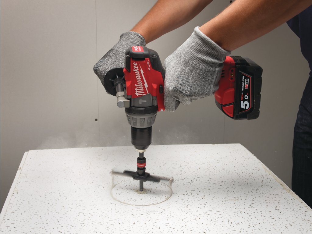 - Pro řezání otvorů s větším průměrem u klimatizačního potrubí, ventilátorů, svítidel a stropních reproduktorů.
