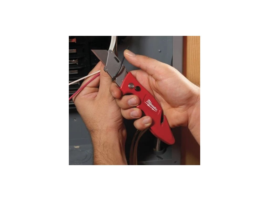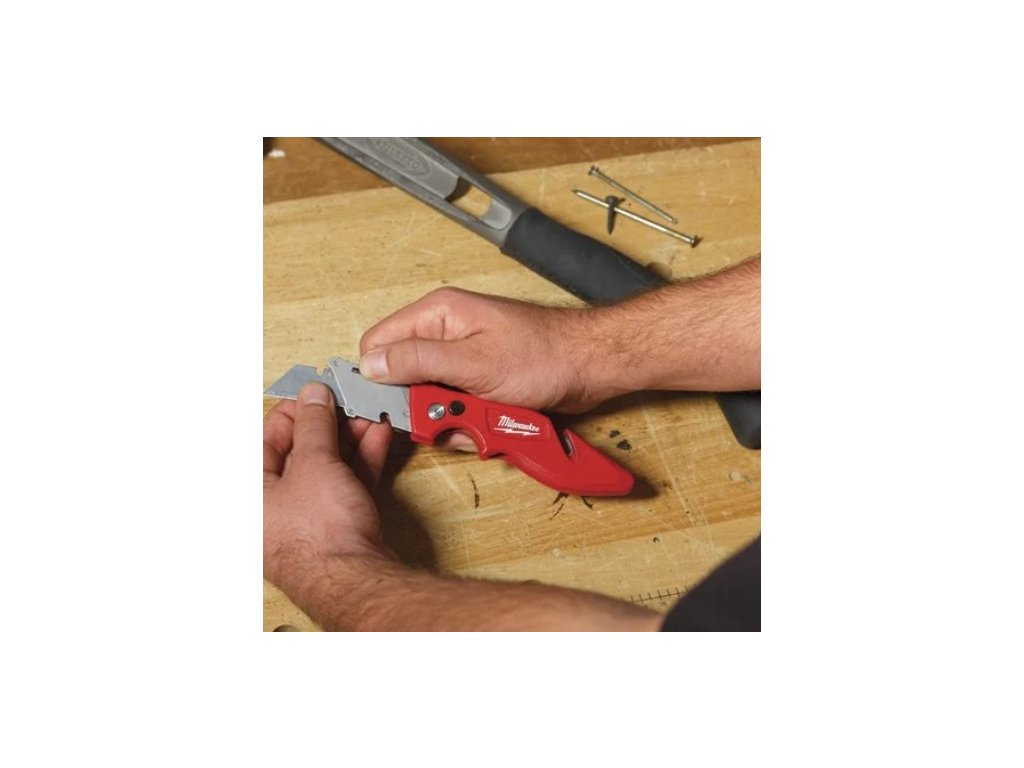 Zavírací nůž Milwaukee FASTBACK™ je praktický nástroj navržený pro efektivní a pohodlné použití. Díky integrovanému háku umožňuje provádět řezy, aniž by bylo nutné nůž otevírat. Beznástrojová výměna čepele šetří čas a usnadňuje práci na místě. Nůž je vybaven funkcí odizolování vodiče, což eliminuje potřebu dalšího nářadí. Díky tenkému designu se pohodlně vejde do kapsy, zatímco klip na opasek zajišťuje snadné uložení a rychlý přístup.