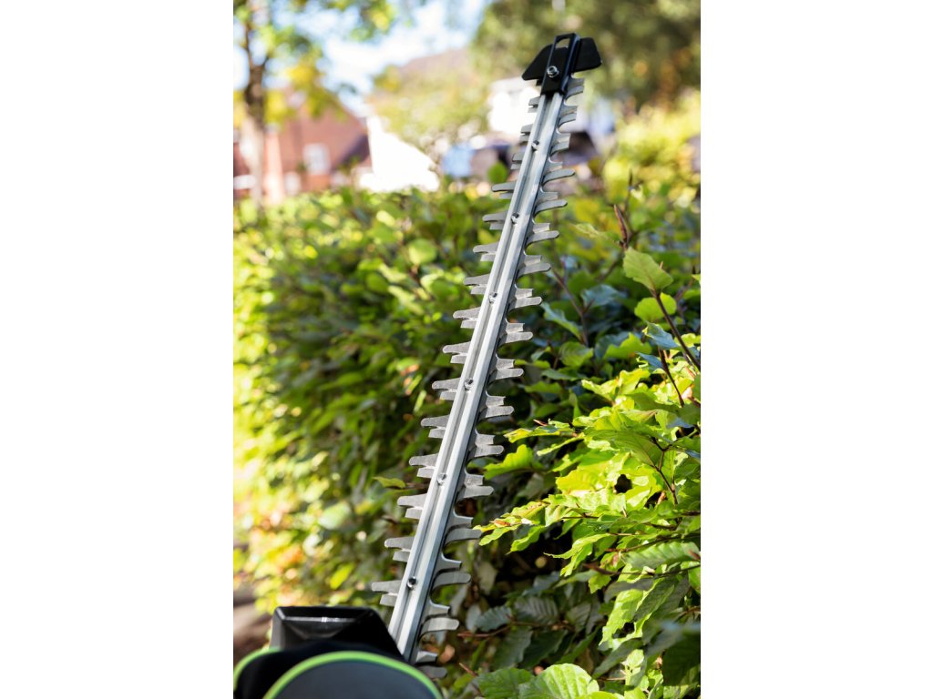 Lehké, jednorychlostní AKU nůžky na živé ploty HT2410E disponují délkou lišty 61cm. Oboustranná lišta je naprosto přesně vyříznuta laserem a je opatřena dvojitým stříhacím nožem s diamantem broušenými břity z jedné strany pro precizně čistý a přesný střih. Tyto nůžky jsou vhodné pro pro pravidelné zastřihávání, údržbu či tvarování živého plotu či jiných okrasných dřevin zejména v domácím prostředí. Pro ulehčení práce lze použít ve spojení se zádovým nosičem baterií. Nůžky jsou dodávány samostatně a pro použití je nutné baterii a nabíječku dokoupit zvlášť nebo použít z jiného stroje značky EGO.