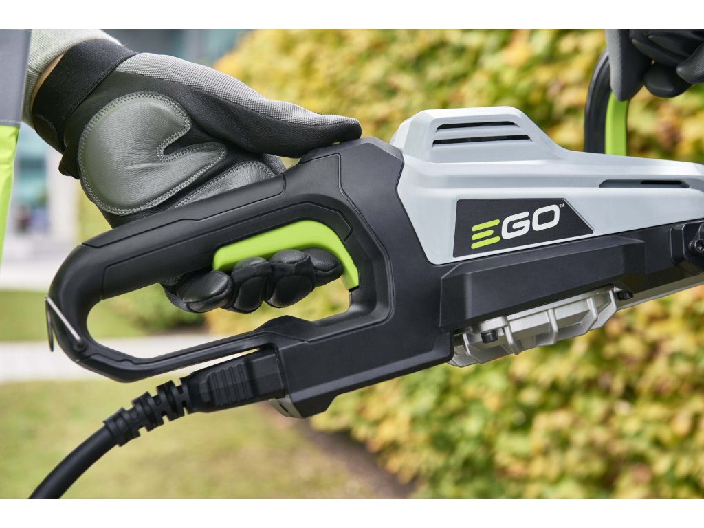 Pro lehkou a přesnou práci a manipulaci je celý stroj dokonale ergonomicky vyvážen. Díky variabilnímu ovládání rychlosti a dlouhé liště v celkové délce 65cm snadno docílíte skutečně rovného a rovnoměrného střihu doslaova jako podle pravítka. Madlo držení je opatřeno bezpečnostní pojistkou, která zaručuje v případě uvolnění okamžité vypnutí stroje. Na rukojeti je umístněn vypínač, který zajišťuje při stisknutí plynulé a postupné spuštění stroje a variabilitu rychlosti. Na pohon nůžek na živý plot lze použít jakoukoliv baterii ze sortimentu EGO Power+ Professional X a např. baterie 28Ah vám umožní pracovat nepřetržitě až 7 hodin.