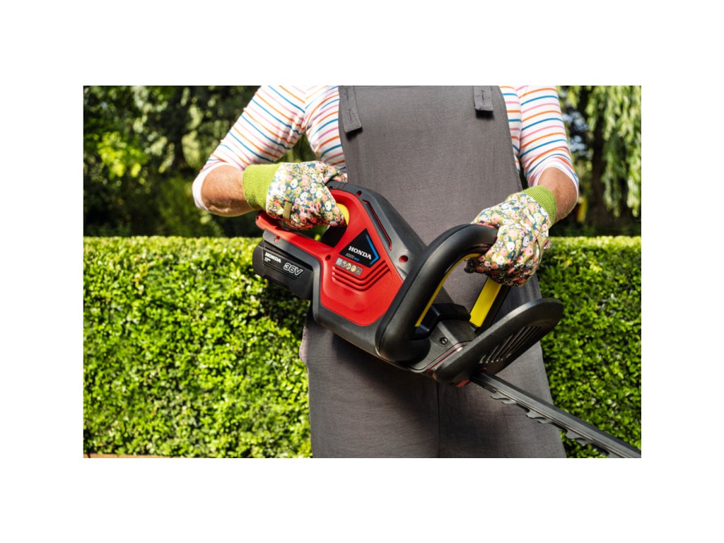 Pro kvalitní úpravu a precizní tvarování živých plotů a okrasných dřevin je důležitý čistý a přený střih, kterým rostlinu nepoškodíte, nezraníte a rostlina tak po zastřižení zůstává zdravá a svěží. Proto Honda AKU nůžky na živý plot jsou vybaveny přesnou, vysoce kvalitní 65 cm dlouhou lištou, přesně broušenou pomocí laserového paprsku. Mimořádně ostré střižné zuby jsou schopny ustřihnout dřevinu do průměru až 28 mm. Pro lehkou a přesnou práci a manipulaci je celý stroj dokonale ergonomicky vyvážen. Kratší lišta v celkové délce 65 cm dělá ze stroje opravdu mrštného "holiče". Madlo držení je opatřeno bezpečnostní pojistkou, která zaručuje v případě uvolnění okamžité vypnutí stroje. Pohodlné manipululaci při práci přispívá rovněž ovládací rukojeť vyrobená z příjemného materiálu a ergonomického tvaru. Díky dokonalému vyvážení je práce se strojem mimořádně snadná. O pohon se stará výkonný bezkomutátorový elektromotor s vysokou odolností proti přetížení a přímým náhonem na pracovní nástroj. Žádná napájecí šňůra, žádné provozní náplně, žádný hluk, žádný zápach. O napájení elektromotoru se stará vysoce výkonný Li-ion akumulátor s napětím 36 V s důmyslným vnitřním chlazením jednotlivých článků, což znatelně přispívá k delší výdrži akumulátoru pod vysokou zátěží. Akumulátory svojí hmotností patří k nejlehčím na trhu.